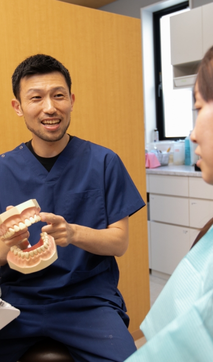 問題がある部分だけを治療するのではなく、患者様にお口全体のお悩みを伺ったり、こちらも検査を通して気がついた部分を説明したりして、お口全体の健康を維持できるよう治療を行っています。